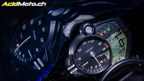 Comme d'habitude avec la marque japonaise, la finition est de haut niveau, les plastiques sont bien ajustés et la peinture des carénages devrait accepter les contraintes extérieures sans soucis. Mon seul regret vient du bloc compteur, qui n'est autre que celui de la précédente R1. Yamaha a fait le choix de piocher dans son large catalogue de pièces et de l'équiper ainsi. Dommage, d'autant que de nos jours les écrans LCD pullulent chez la plupart des constructeurs. Forcément, il fallait bien faire des économies quelque part pour pouvoir proposer une R6 à moins de 15'000 francs,  14'990.- pour être exact.