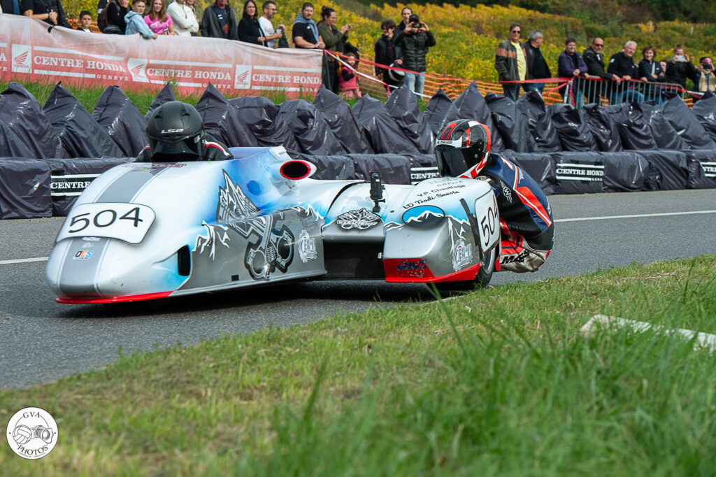 6e, c’est le duo Yvan Vittoz et Cyril Vinet en side-car avec 46.74, 7e Vincent Gysler qui n’a fait que deux montées chrono, le reste du week-end il officiait comme adjoint directeur de course, belle performance. 8e, Julien Haenggenli était invité le dimanche. Champion suisse de supermotard, il roulait une TM Racing engagée en mondial. 9e Yann Gysler qui n’a fait qu’une montée avec sa moto le dimanche en 47.80. Et enfin 10e, Stéphane Monaya 47.91, un scooter pour s’incruster au classement.