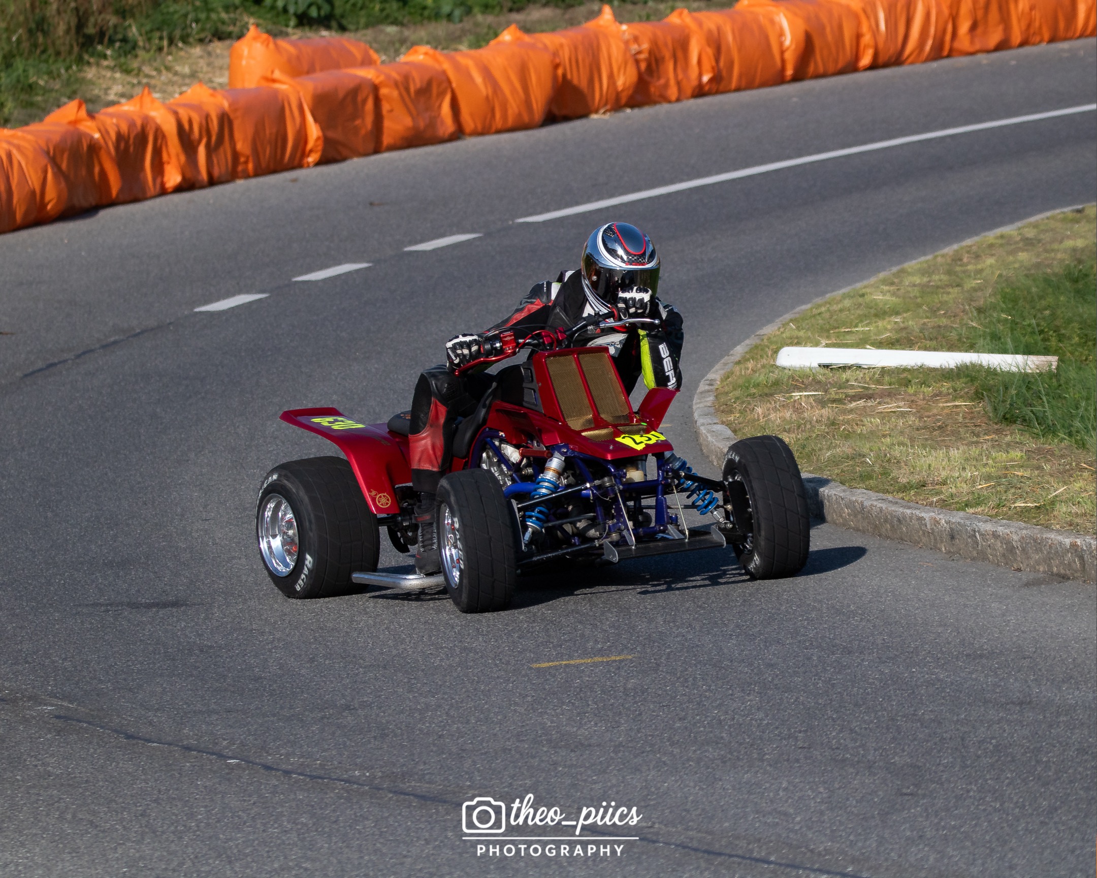 Dans la catégorie, scooter et vélomoteur se disputent mais souvent avec le même moteur fabriqué par Stéphane Monaya. C’est lui d’ailleurs qui règne sur la catégorie, le seul qui descend sous les 50″ avec son bolide (47.98 !). Juste derrière, c’est Remo Hänni venu de Suisse alémanique, qui lui colle aux basques avec un cyclo 70 cm³. Alexandre Giannasi complète le podium, meilleur temps en 52.07.