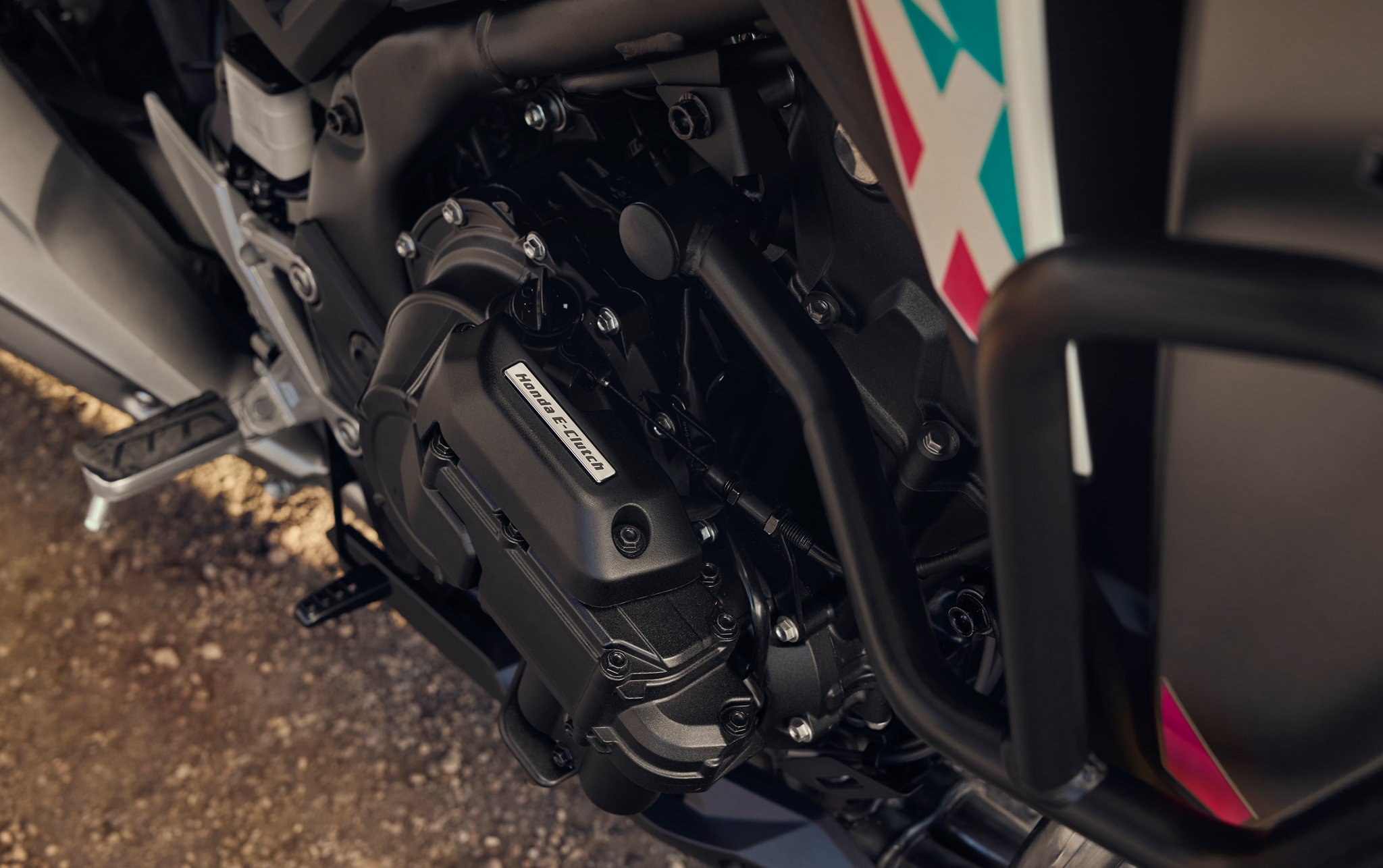 Le système Honda E‑Clutch vient remplacer le pilotage manuel traditionnel sans supprimer le levier. Le conducteur peut donc le reprendre en main à tout moment, le fonctionnement redevenant alors 100 % mécanique. Ce nouvel embrayage agit plus vite et plus en douceur qu’un quickshifter, aussi bien à la montée qu’à la descente, et propose trois niveaux de sensation sur le sélecteur (Soft, Medium, Hard). L’objectif est double : plus d’accessibilité pour les nouveaux pilotes et plus de confort au quotidien pour les habitués.