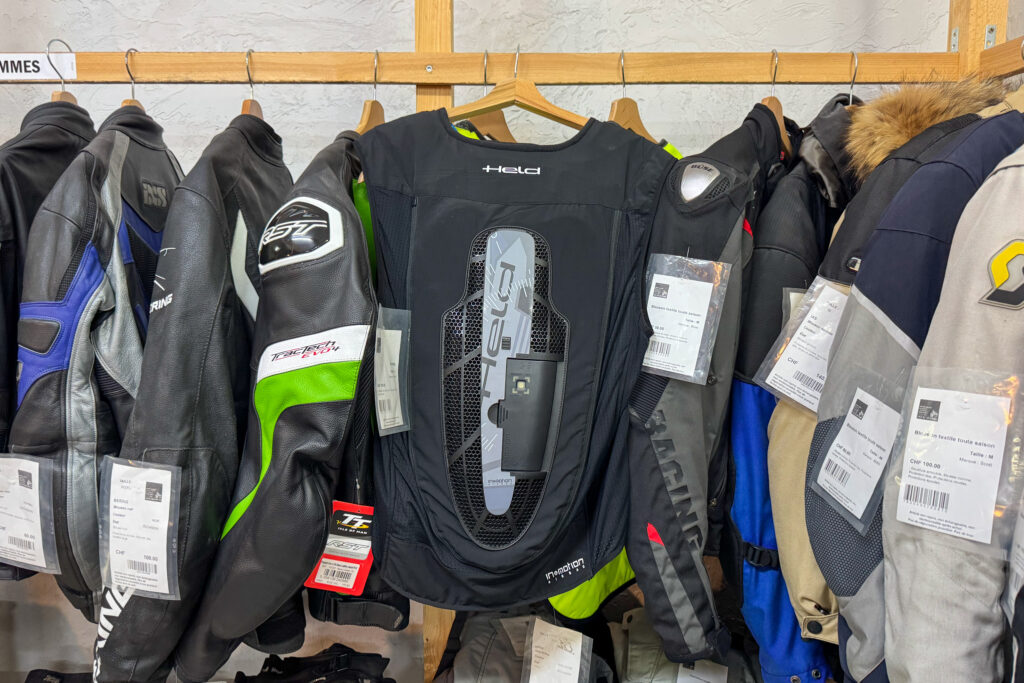 Il y a parfois des surprises, comme explique Sébastient : « il y a actuellement en rayon un gilet airbag Held, technologie In&Motion avec boitier activé à vie (sans mises à jour). Le boîtier seul vaut 400.- car n’a plus besoin d’abonnement. Le gilet serait 150.- à 200.- de plus. Prix de vente ? 100.-. Le client qui l’a déposé car il arrête la moto et souhaite qu’un autre puisse profiter de ce surplus de protection à moindre coût. »