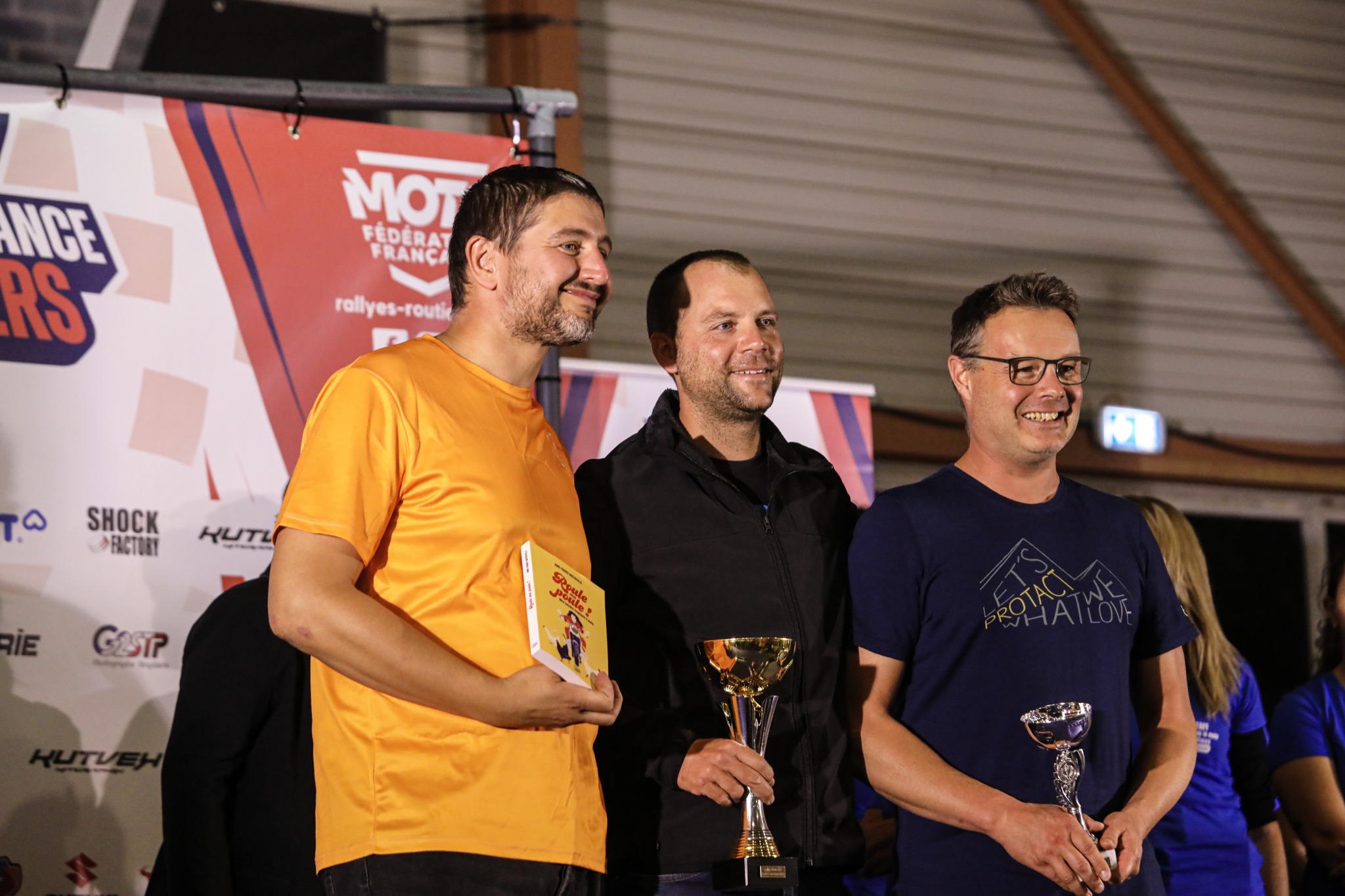 À l’arrivée, retour au parc fermé devant le Salon de la Moto de Nîmes pour la remise des prix. Le podium scratch est identique à celui de la catégorie Rallye 2 : 1er Vincent JOUANEN, suivi de Tanguy BREBION second et Mathias COURTAUD 3e.