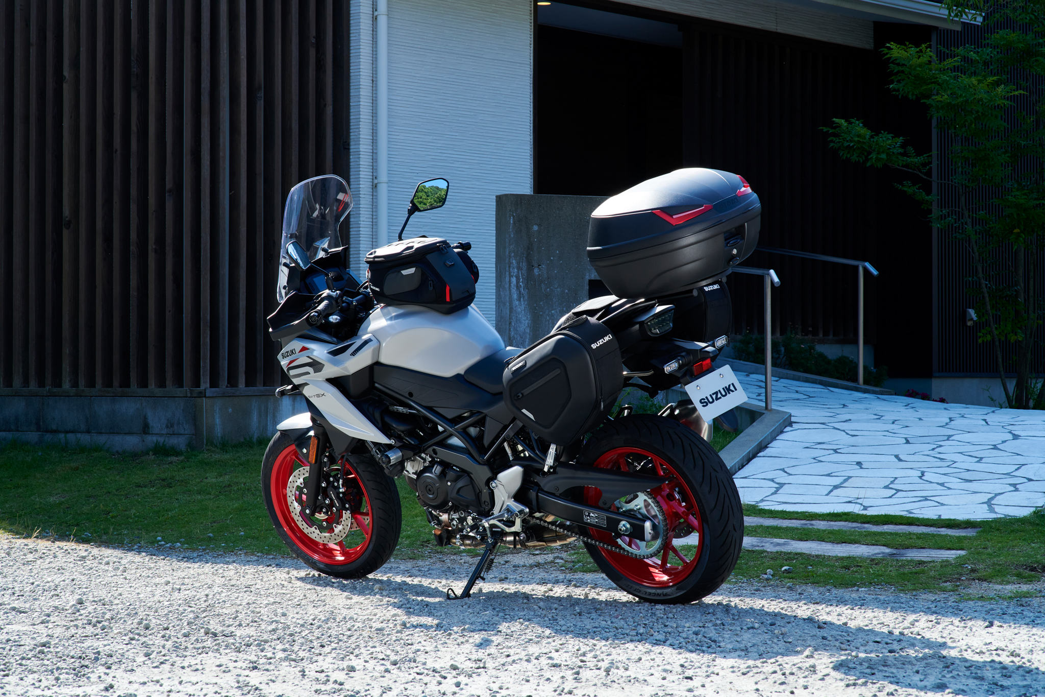 La SV-7GX adopte des roues de 17 pouces chaussées de Pirelli Angel GT II, avec un réservoir agrandi à 17,4 litres. Elle affiche 211 kg tout plein fait et une consommation annoncée de 4,2 l/100 km. Disponible en Pearl Brilliant White / Triton Blue, Pearl Matte Greige et Glass Sparkle Black, la SV-7GX tentera de s’imposer comme une nouvelle référence dans le segment crossover mid-size, alliant l’âme de la SV à la technologie des modèles de tourisme Suzuki.