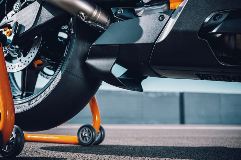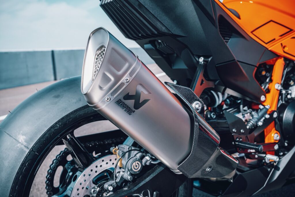 Dans sa version piste, KTM enlèvera de la moto ce qui sert pour l’homologation et ajoutera ce qu’ils appellent « des équipements de protection » ainsi que des carénages au look plus racé. L’ABS sera supprimé pour utiliser des durites directes. Celle-ci arrivera en février 2026.