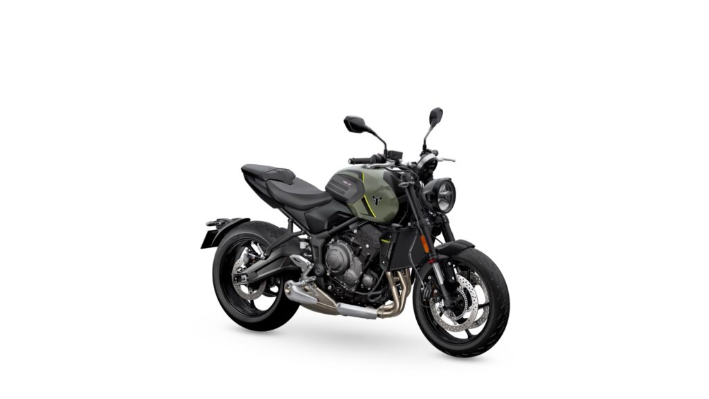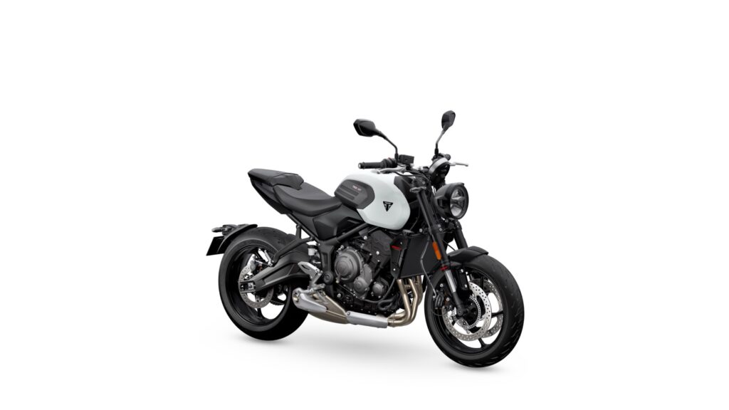 Le châssis a été adapté pour accueillir les nouveaux éléments d’admission, sans modifier la géométrie générale. La suspension Showa conserve un débattement de 150 mm à l’avant comme à l’arrière, avec un amortisseur équipé d’un réglage de précharge déporté. L’équipement de série inclut également le shifter bidirectionnel, le régulateur de vitesse, l’ABS sur l’angle, le contrôle de traction optimisé et la connectivité My Triumph.