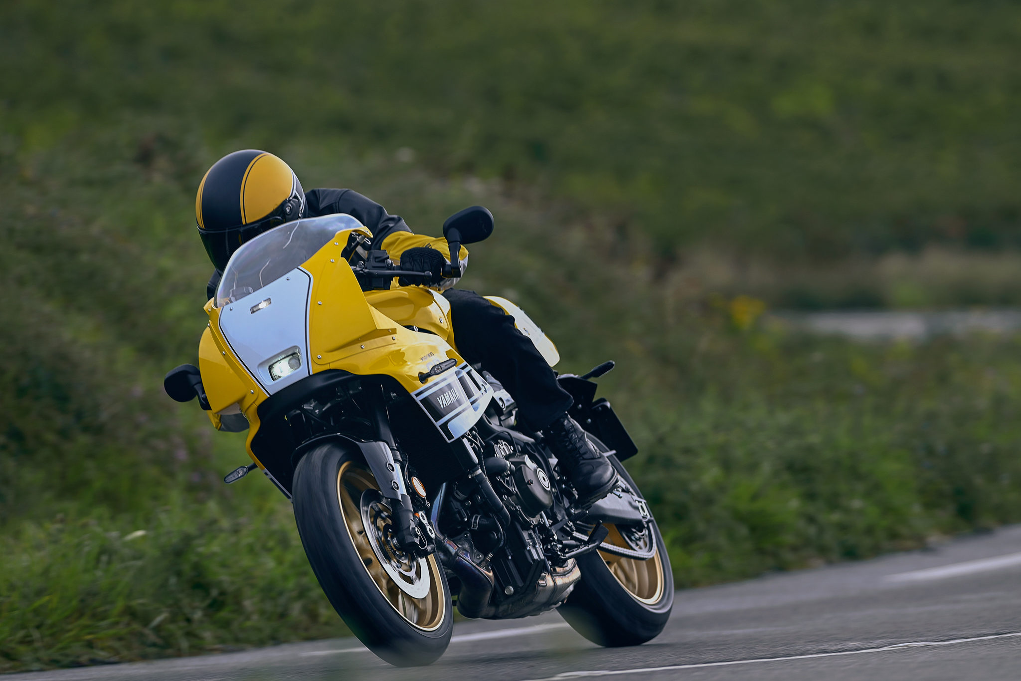 Le cadre Deltabox en aluminium, dérivé de la MT-09, a été retravaillé pour une rigidité accrue. La suspension est confiée à des éléments KYB entièrement ajustables, avec une fourche inversée de 41 mm et un amortisseur relié par biellettes. Les freins Brembo à double disque avant de 298 mm assurent une puissance de freinage de bon niveau sans être celle d’une sportive. La position de conduite a elle aussi été revue : un guidon semi-bracelet, une selle en deux parties et un carénage enveloppant plongent le pilote dans une ambiance de course des années 80, sans compromettre le confort.
